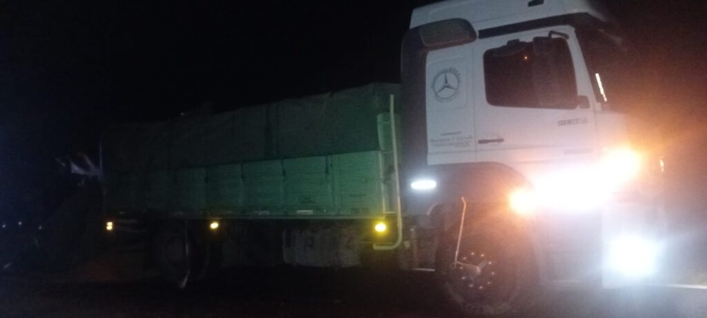 De acuerdo a lo informado por las autoridades pertinentes, un camión Mercedes Benz 1938 que transportaba cereal sufrió un desperfecto mecánico que originó el desprendimiento de su acoplado, el cual culminó volcando sobre la cinta asfáltica y derramando parte de su carga, motivando por ende la obstrucción del tránsito de manera parcial.