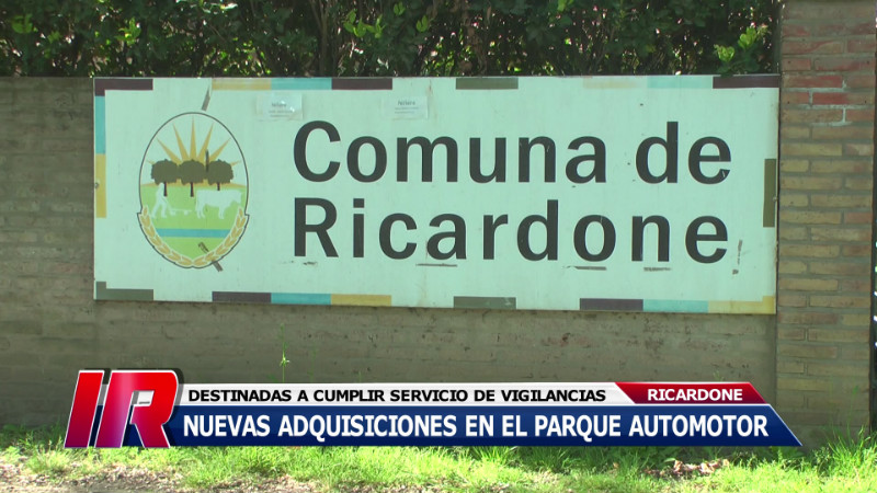El presidente comunal de Ricardone, Juan Carlos Doria, anunció que se han adquirido dos nuevos vehículos, los cuales serán destinados a efectuar tareas de vigilancias en toda la localidad, a la vez que se encuentran realizando capacitaciones con el personal que se dedicará exclusivamente a tales fines.