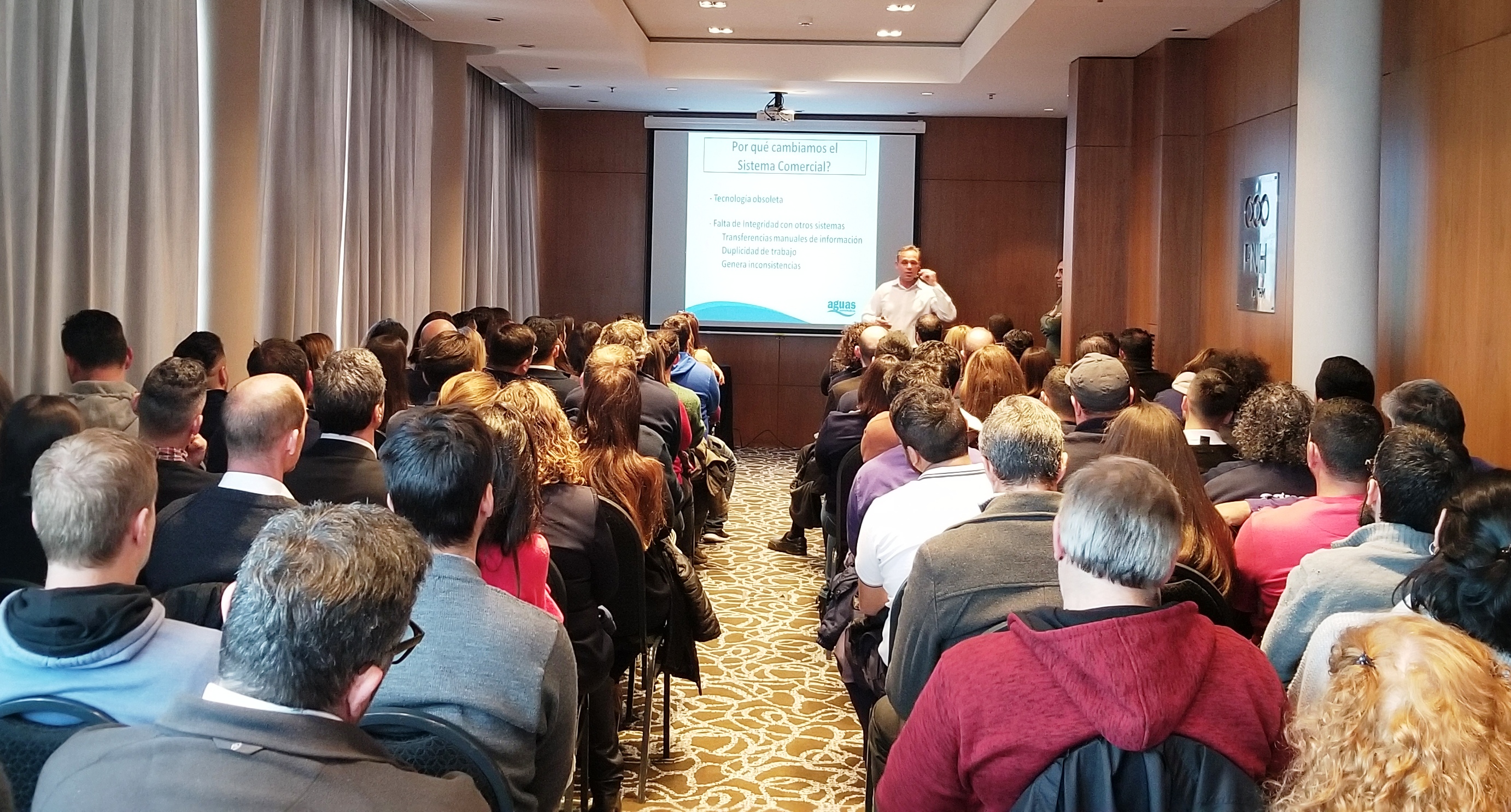 El cambio implica una amplia modificación de procesos en Aguas, involucrando directamente a 400 empleados que utilizan el sistema comercial, que fueron preparados por medio de 7.500 horas de capacitación. El nuevo sistema es más simple, adaptable y colaborativo, permitiendo el trabajo en equipo, con abundante disponibilidad de datos y riqueza de información. La empresa incorpora tecnología de la firma alemana SAP, líder global y proveedor de dichos productos al 80 % de las grandes empresas del mundo.