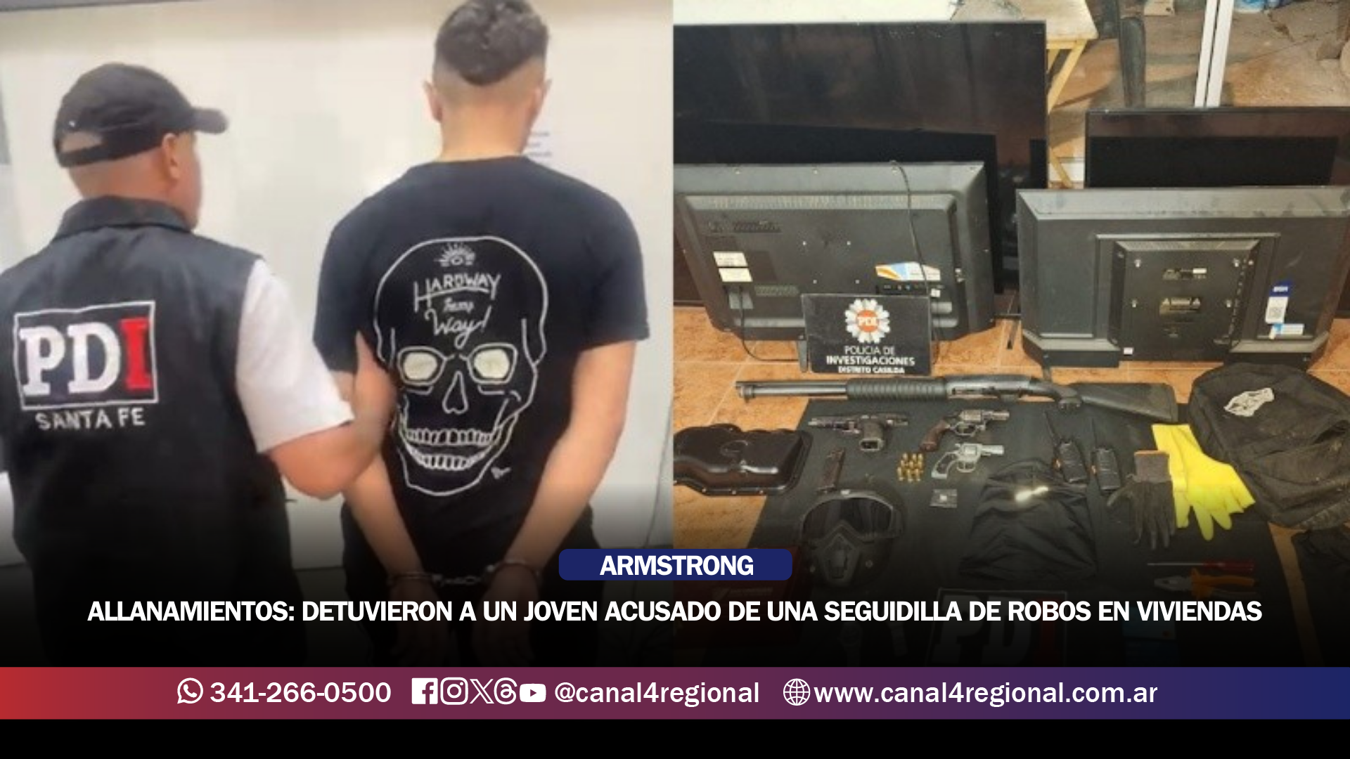 Balbi, quien cuenta con antecedentes penales por robos, es señalado como integrante de una banda dedicada a cometer asaltos en viviendas de Los Molinos, Maciel, San Fabián, Barrancas, Armstrong y Acebal. La causa está a cargo del fiscal de Casilda Juan Carlos Oggero, quien dispuso su detención tras los operativos.