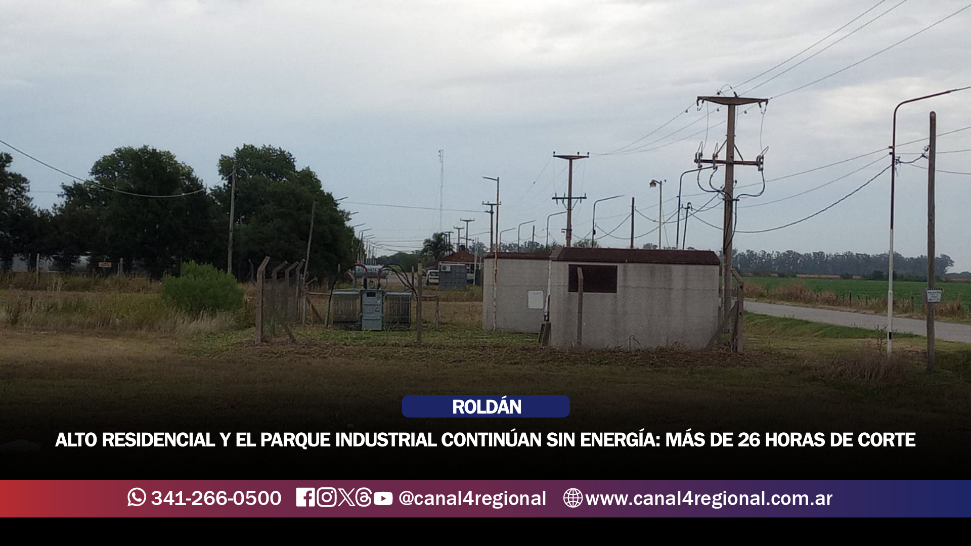 El barrio Alto Residencial y el Parque Industrial Roldán continúan sin suministro eléctrico, luego de un corte que ya supera las 26 horas. La interrupción del servicio se produjo el miércoles a las 10 de la mañana y, hasta el momento, no hay un horario confirmado para su restitución.