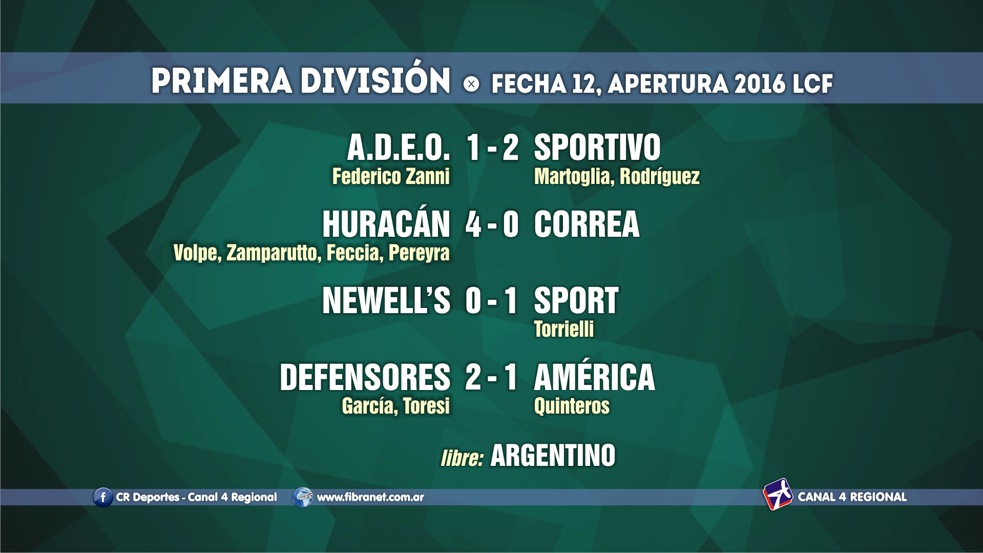 Volvió el fútbol tras el cese por el mal tiempo, jugándose en nuestra región la duodécima jornada del Torneo Apertura de las categorías superiores de la Liga Cañadense de Fútbol.
