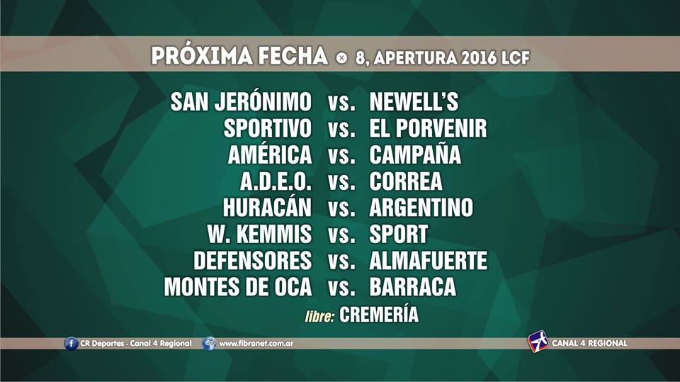 Jornada especial será la número 8, ya que se estará jugando entre semana en horario nocturno, a las 19:45 y las 21:45 hs. respectivamente. El Porvenir visitará a Sportivo de Las Parejas el miércoles 11, mientras que el jueves 12 en el Bosque Suizo jugarán el Atlético y Newell’s de Cañada de Gómez.