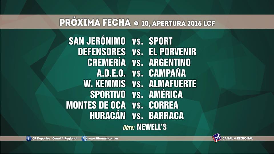 El próximo domingo 22 de mayo se disputará la décima fecha, donde en el Bosque Suizo se enfrentarán el Atlético San Jerónimo y el Sport Club; mientras que El Porvenir visitará a Defensores de Armstrong.