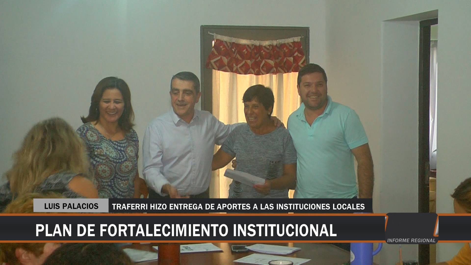 En compañía del presidente comunal Adrián Biyovich, Traferri hizo también entrega de aportes correspondientes al Plan de Fortalecimiento Institucional a la Biblioteca Popular “Almafuerte”, el SAMCO, la Escuela Primaria n° 237, la EESO n° 604, el CER de Paraje Echeverría, el club Once Unidos, el Club de Leones, la Comisaría 10ª, y las iglesias “Aposento Alto” y “San Roque”.