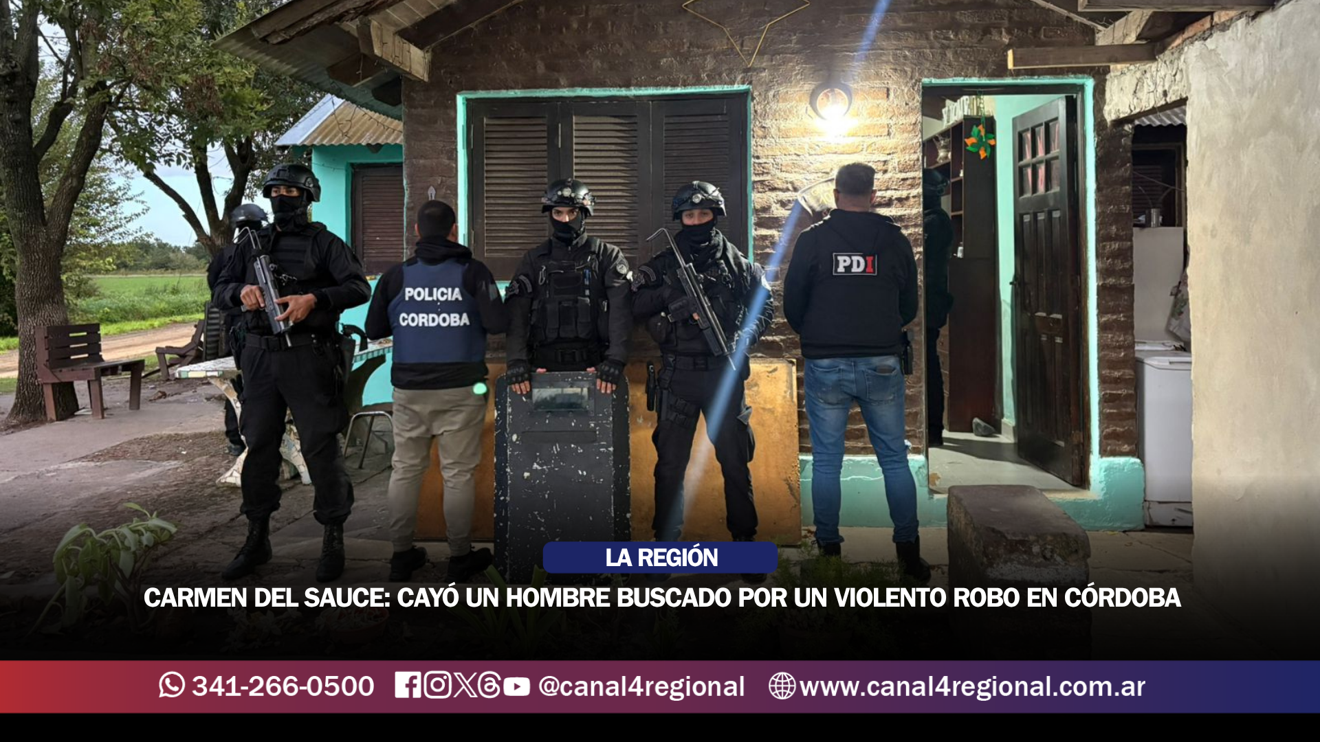 El principal objetivo fue localizado en una vivienda de calle 9 de Julio al 300, en Carmen del Sauce. Allí fue detenido Héctor Raúl F., quien era intensamente buscado por su presunta participación en el asalto en las sierras cordobesas.