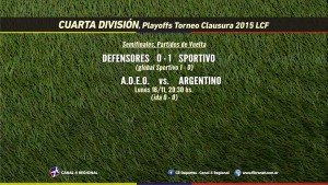 En tanto, en Cuarta División, el Lobo también sacó pasaje a las finales, derrotando en el match de vuelta a Defensores por 1 a 0. En la noche de hoy, A.D.E.O. y Argentino animarán el otro choque, a partir de las 20:30 hs., en Cañada de Gómez.