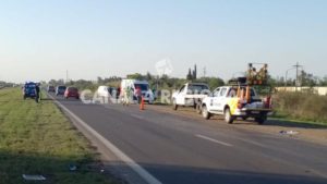 El hecho ocurrió minutos antes de las 18 horas en el kilómetro 14 de la autopista Rosario – Santa Fe, donde colisionaron un utilitario Peugeot Partner dominio AA674EO conducido por un masculino de 33 años de edad, oriundo de Rosario, y una motocicleta Guerrero DL 110 cc sin dominio manejada por una mujer de 43 años radicada en la zona rural ricardonense.