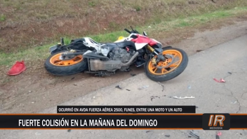 En la mañana de este domingo, minutos después de las 9:30 horas, se produjo un siniestro vial en avenida Fuerza Aérea al 2500, en la ciudad de Funes, a unos 300 metros al oeste de la sede del Liceo Aeronáutico Militar, donde debieron intervenir personal policial y de tránsito junto al SIES en el lugar.