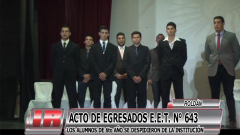 El pasado día miércoles, en una emotiva ceremonia realizada en la sala principal de la Casa de la Cultura, la Escuela de Educación Técnica nº 643 «Granaderos de San Lorenzo» de la ciudad de Roldán llevó adelante el tradicional acto de egresados de la promoción 2015.