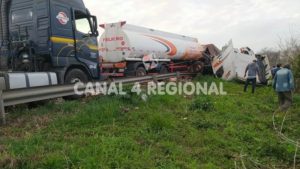 En dicha ocasión colisionaron de manera frontal dos camiones, un Mercedes Benz dominio AZU688 con acoplado patente JBX589 conducido por O.A.E., de 30 años de edad, oriundo de la localidad cordobesa de Río Primero, que transportaba bebidas, edulcorante y puré de tomates; y un cisterna Volvo dominio 4236SCE conducido por C.A.C. de 42 años, oriundo del departamento La Paz, república de Bolivia.