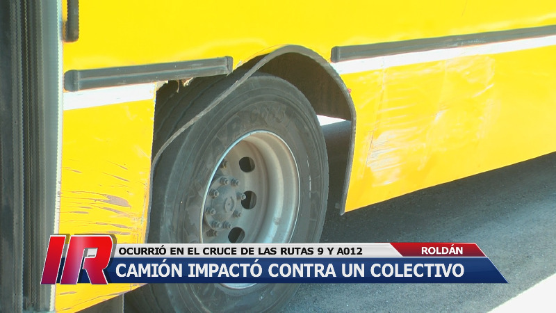 En el mediodía de este lunes 18 de diciembre se produjo un accidente de tránsito en la intersección de las rutas nacionales A012 y 1V09 (la ex RN 9), en jurisdicción de Roldán, el cual tuvo como protagonistas a un camión cerealero con acoplado y a un colectivo de transporte de pasajeros.