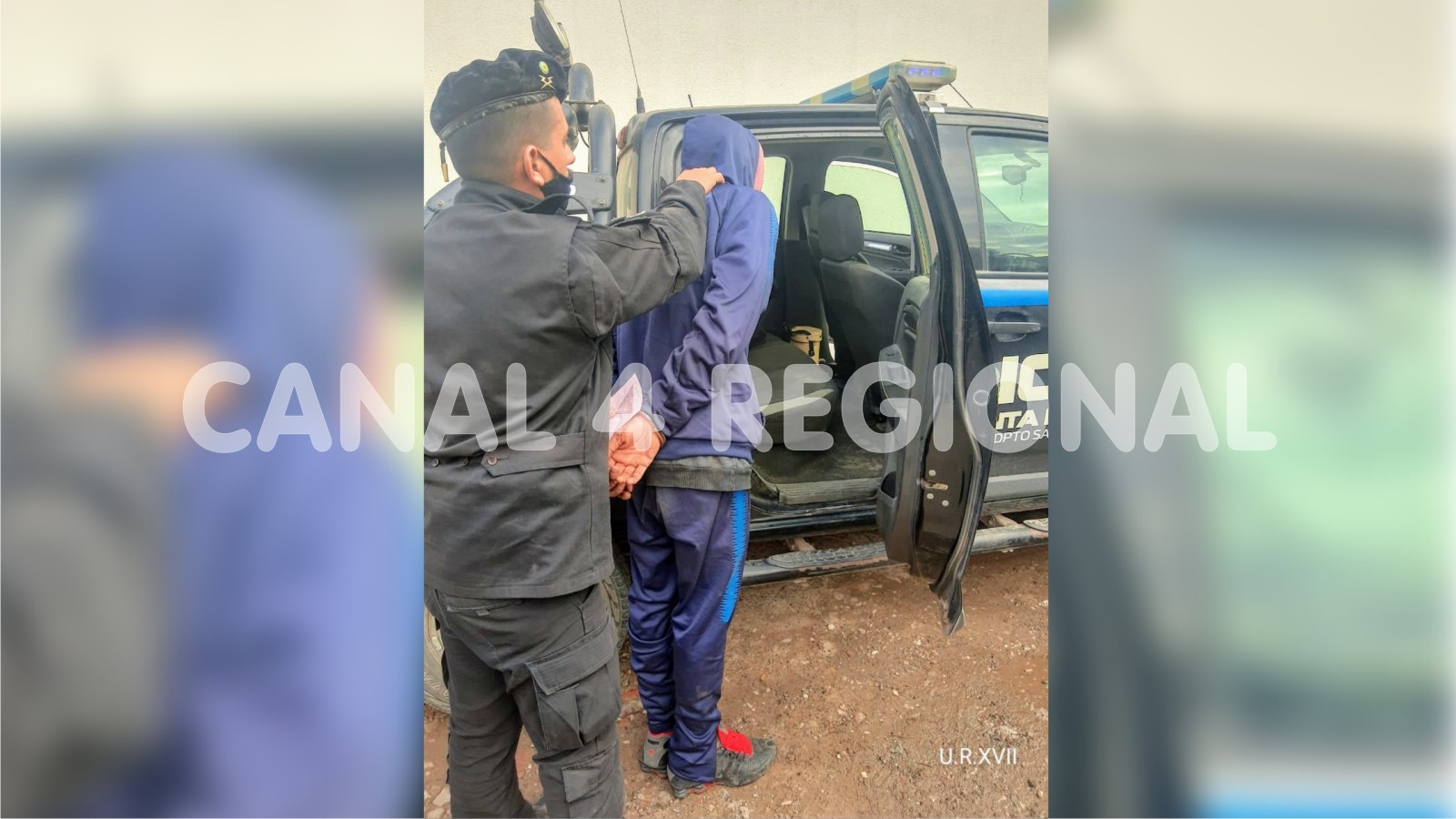 Junto al Comando Radioeléctrico de Funes se procedió a la requisa del predio lográndose la aprehensión de un sujeto, de 27 años de edad y oriundo de Roldán, siendo el mismo detenido de acuerdo a las órdenes de la Fiscalía de Flagrancia en turno, formulándose causa por Tentativa de robo por el hecho de la vivienda y por Robo calificado y daño en referencia al automóvil, el cual se trataba de un taxi dominio AA 678 LY que fue secuestrado por las autoridades.