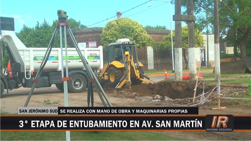 Prosiguen las obras de la construcción del entubamiento por el bulevar San Martín por parte de la Comuna de San Jerónimo Sud con el objeto de que las aguas pluviales puedan ser encauzadas en su trayectoria de escurrimiento que históricamente atraviesa el corazón de la localidad.