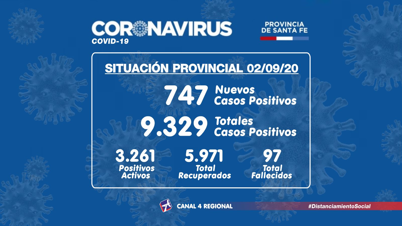 El Ministerio de Salud de Santa Fe, a través de la Dirección Provincial de Epidemiología, informa a la población que en el día de la fecha se han confirmado 747 casos nuevos de COVID-19, en el territorio provincial.