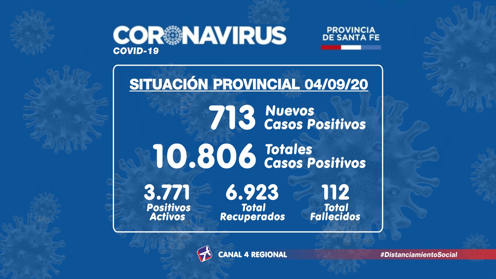 El Ministerio de Salud de Santa Fe, a través de la Dirección Provincial de Epidemiología, informa a la población que en el día de la fecha se han confirmado 713 casos nuevos de COVID-19, en el territorio provincial.