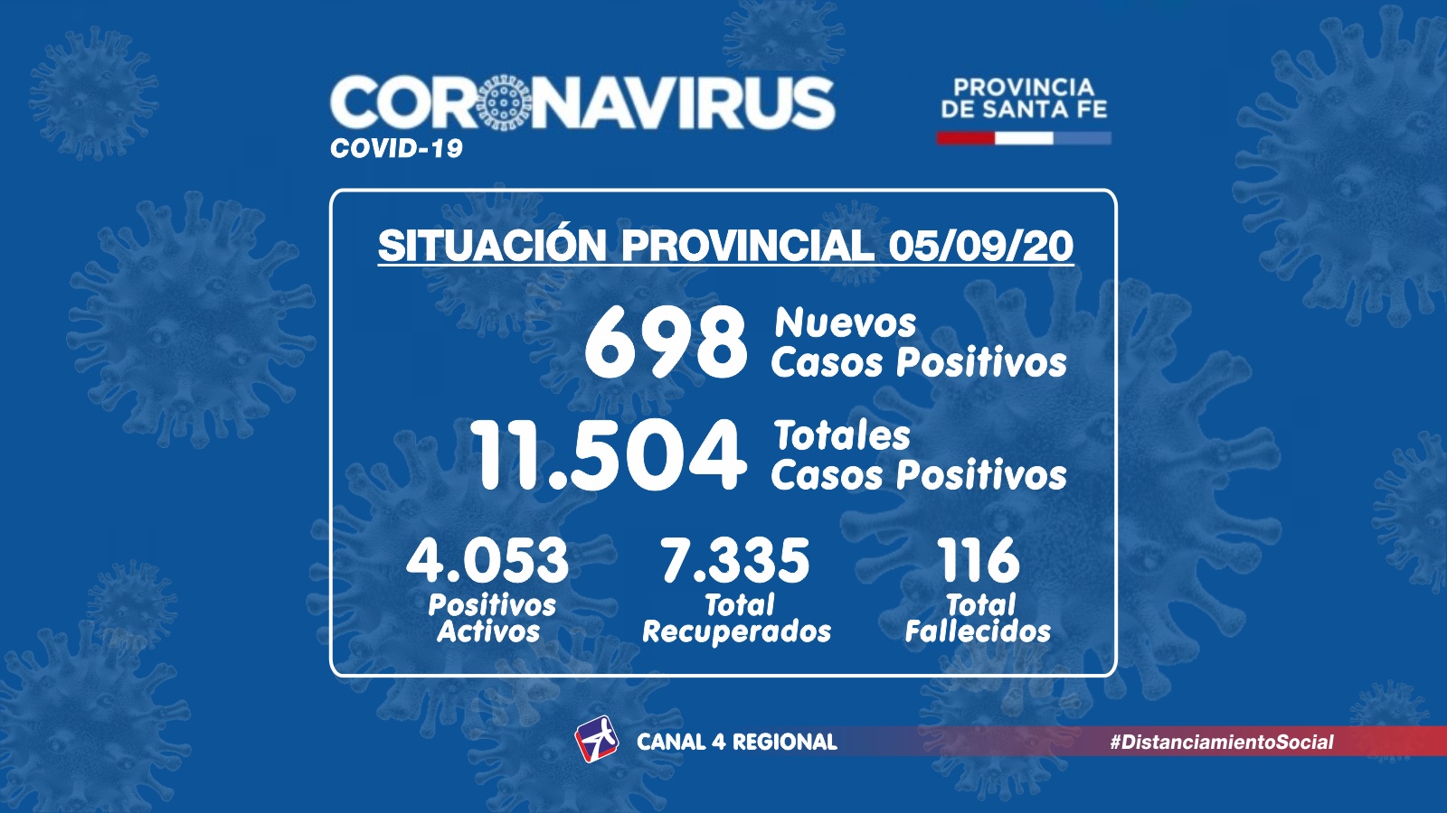El Ministerio de Salud de Santa Fe, a través de la Dirección Provincial de Epidemiología, informa a la población que en el día de la fecha se han confirmado 698 casos nuevos de COVID-19, en el territorio provincial.