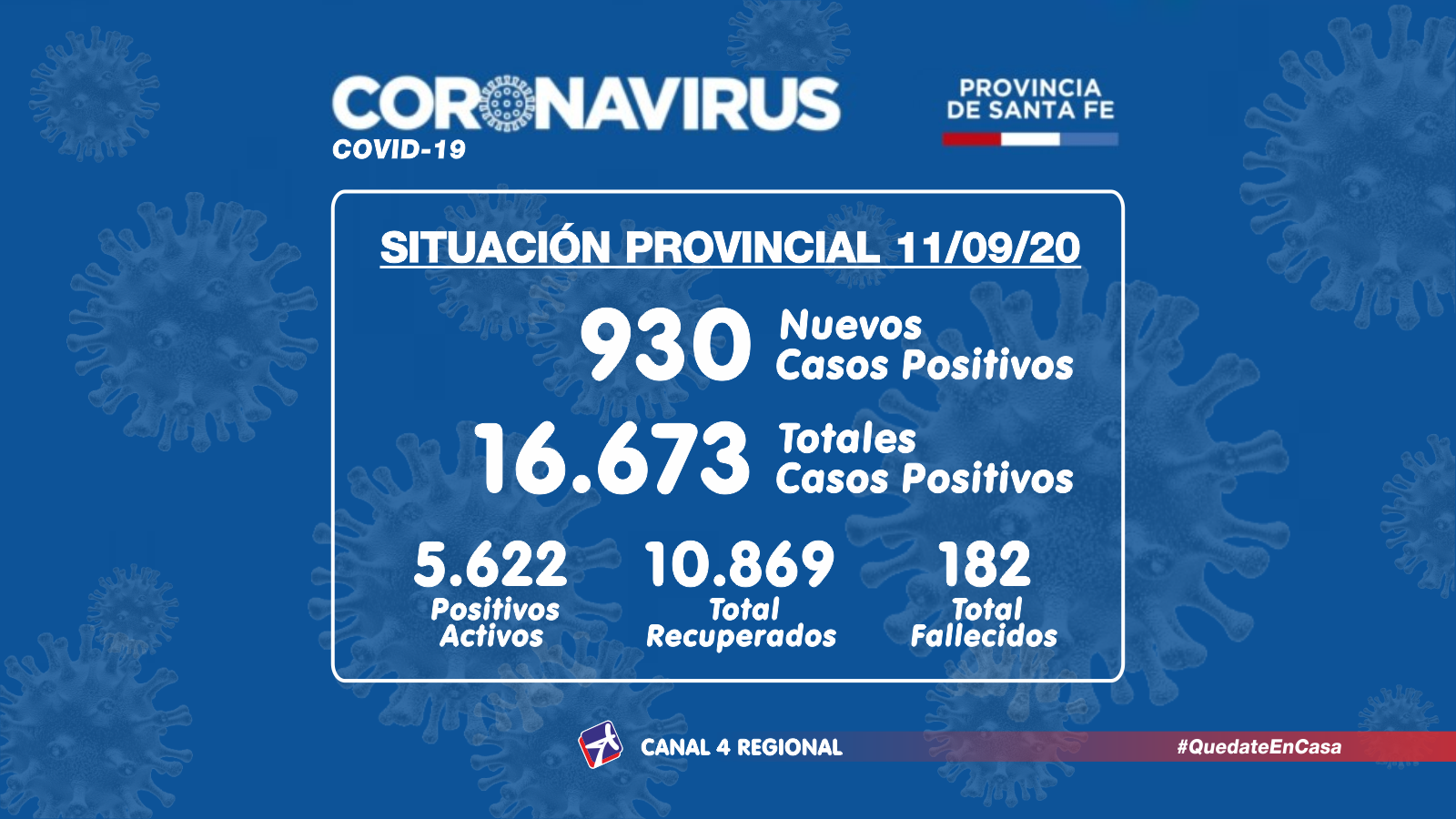 El Ministerio de Salud de Santa Fe, a través de la Dirección Provincial de Epidemiología, informa a la población que en el día de la fecha se han confirmado 930 casos nuevos de COVID-19, en el territorio provincial.