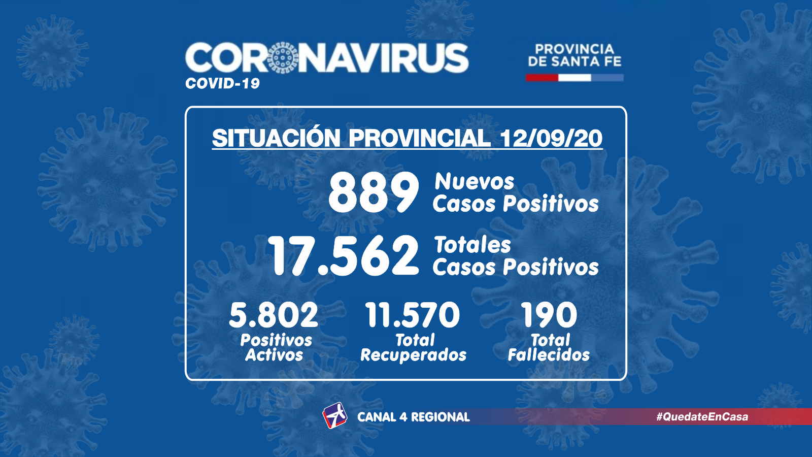 El Ministerio de Salud de Santa Fe, a través de la Dirección Provincial de Epidemiología, informa a la población que en el día de la fecha se han confirmado 889 casos nuevos de COVID-19, en el territorio provincial.
