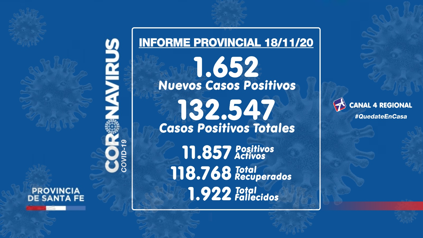 El Ministerio de Salud de Santa Fe, a través de la Dirección Provincial de Epidemiología, informa a la población que en el día de la fecha se han confirmado 1.652 casos nuevos de COVID-19, en el territorio provincial.
