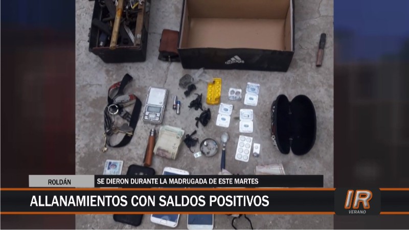 Una serie de allanamientos de manera simultánea tuvieron lugar en la ciudad de Roldán, los cuales tuvieron resultados positivos y que derivaron la detención de dos sujetos, uno de ellos con frondoso prontuario, como así también el secuestro de estupefacientes y de elementos obtenidos mediante robos.