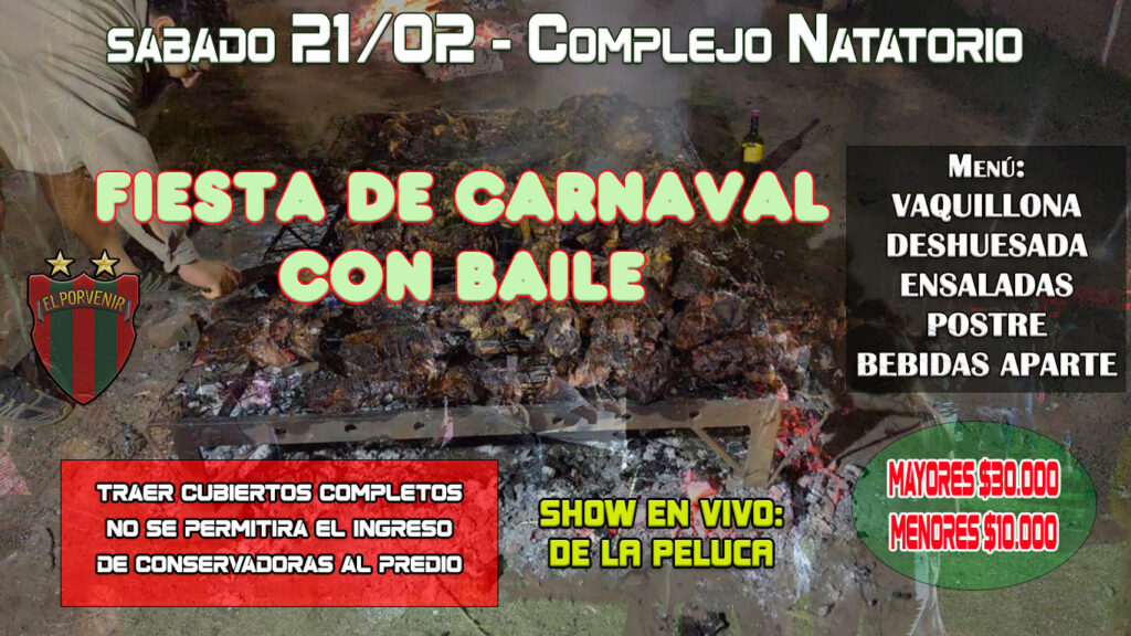 El Club Atlético El Porvenir del Norte de San Jerónimo Sud invita a toda la comunidad a participar de su Fiesta de Carnaval, que se llevará a cabo el próximo sábado 21 de febrero en el Complejo Natatorio de la institución.