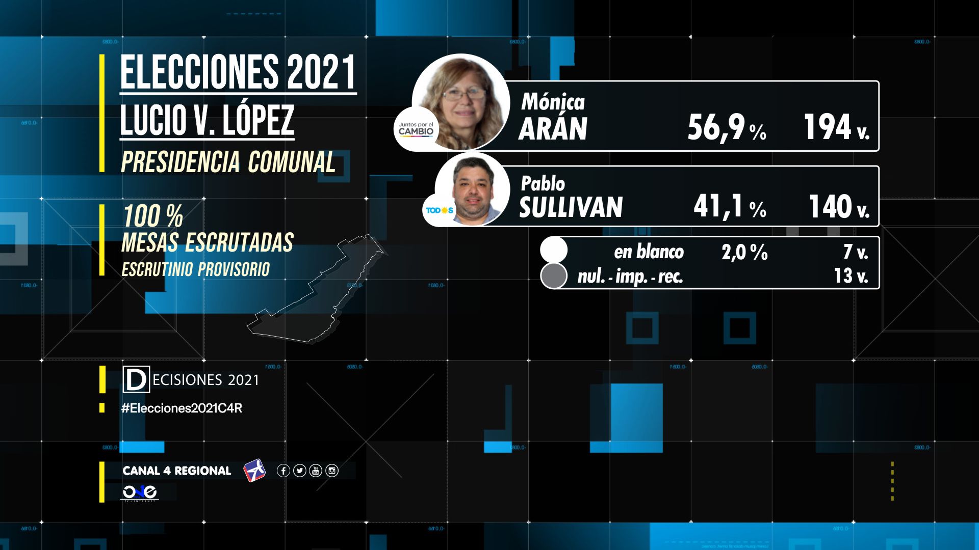 Los resultados arrojados por las urnas fueron más amplios que los ocurridos en el 2017 cuando Sullivan se impuso por un voto y que en 2019 cuando Arán lo hizo por 7. En esta oportunidad fueron 54 los sufragios de diferencia que posibilitaron que la actual mandataria encabece su segundo mandato consecutivo al frente de la Comuna representando Juntos por el Cambio, y el tercero en su trayectoria ya que en 2013 asumió bajo el ala del Frente Progresista Cívico y Social.