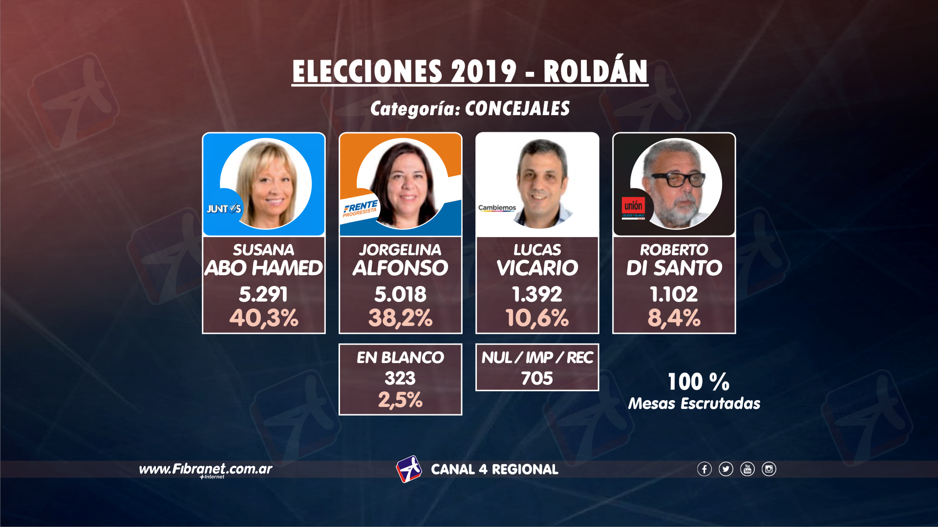 Entre lo que dejaron los números podemos decir que el frente Juntos mermó en 3 puntos lo logrado en las PASO aunque nuevamente logró el justicialismo roldanense superar la barrera de los 5 mil sufragios. Quien sí aumentó sustancialmente el apoyo fue la coalición radical socialista, al acortar la diferencia de 15 a 2 puntos en un escrutinio sumamente reñido, de la mano del regreso activo de Alfonso a la arena eleccionaria y de la captación de las voluntades que redujeron a la mitad las cifras de Cambiemos respecto a las generales de 2017.
