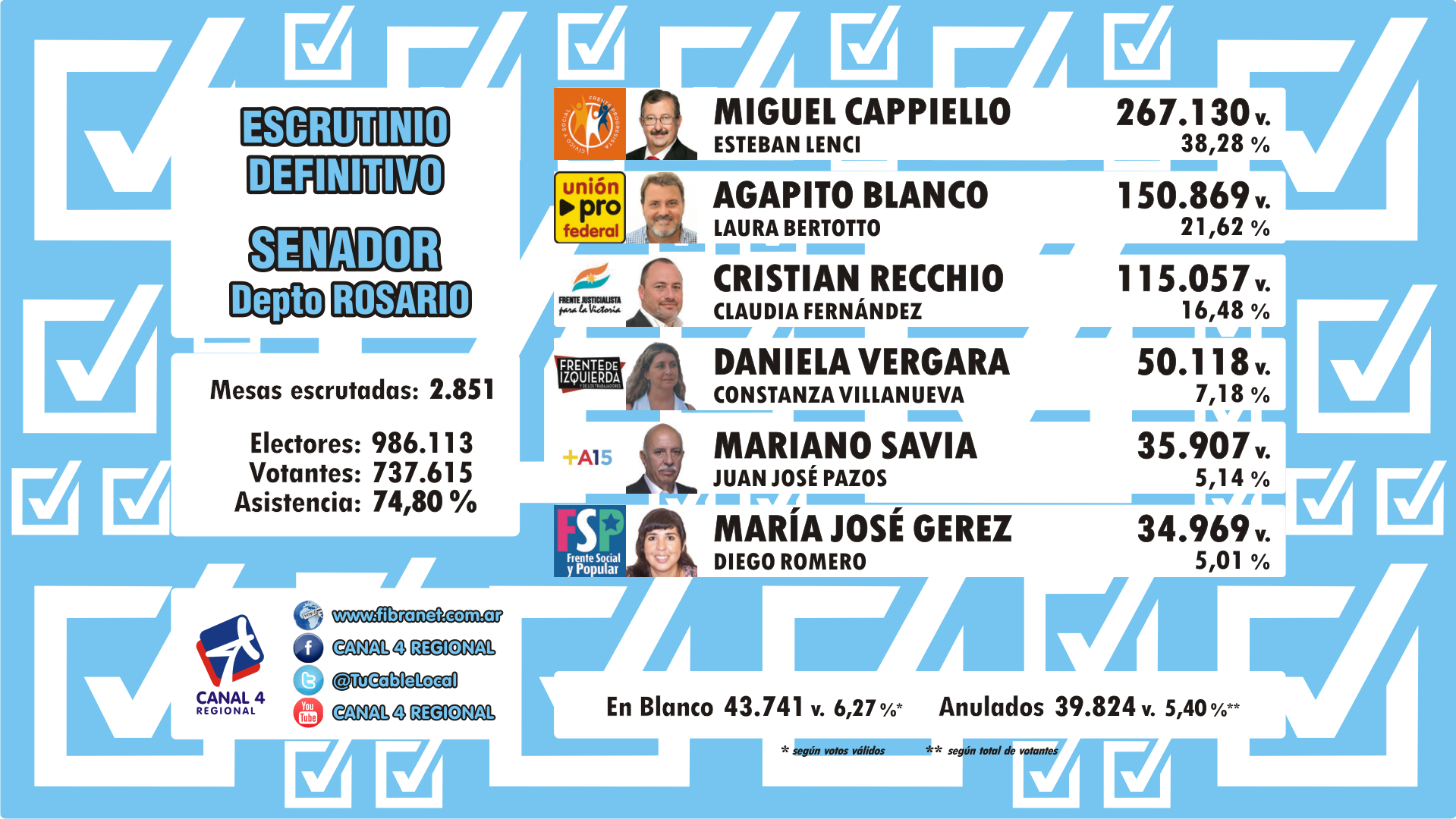 De manera oficial, mediante la publicación de los datos correspondientes en su sitio web, el Tribunal Electoral de la Provincia de Santa Fe ha ido comunicando el recuento de los sufragios de las Elecciones Generales que fueron celebradas el pasado 14 de junio en todo el territorio de “la Bota”.