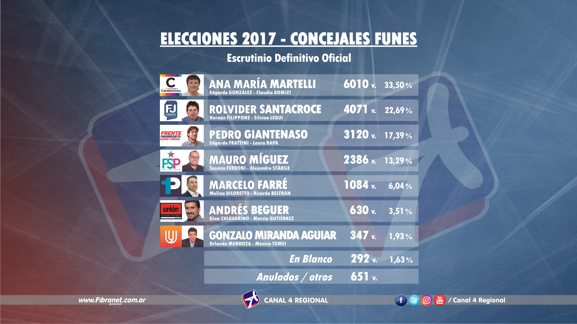 El Tribunal Electoral de la Provincia de Santa Fe dio a conocer en las últimas horas el escrutinio oficial del acto comicial realizado el pasado domingo 22 de octubre. A continuación compartimos los resultados registrados en cada una de las localidades de nuestra zona de influencia: