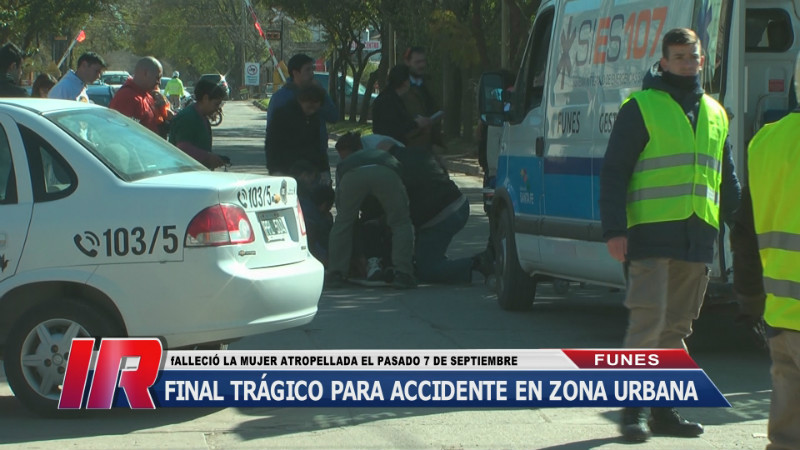 Luego de quince días de estar internada, finalmente en la tarde de este miércoles se produjo el deceso de una mujer producto del accidente ocurrido en la jornada del pasado 7 de septiembre, en la intersección de las calles Santa Fe y Elorza, en la ciudad de Funes.