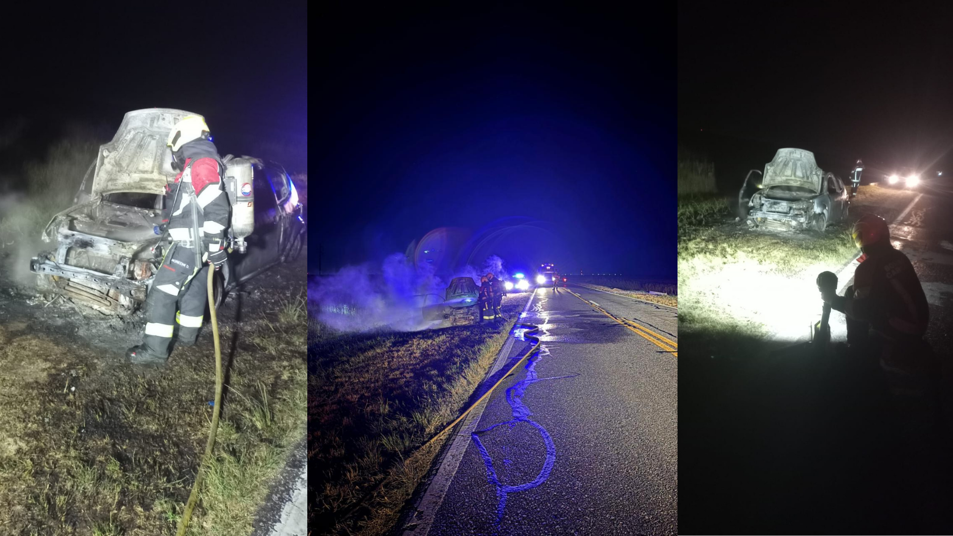 Por las dimensiones y los restos del casco, se determinó que el rodado sería un Ford Ka, modelo Viral. El vehículo no presentaba ocupantes en su interior y se encontraba completamente destruido a causa del fuego. Además, personal de bomberos efectuó un rastrillaje preventivo en los pastizales y zonas aledañas, con resultado negativo, ya que no se hallaron personas heridas ni vinculadas al hecho en las inmediaciones.