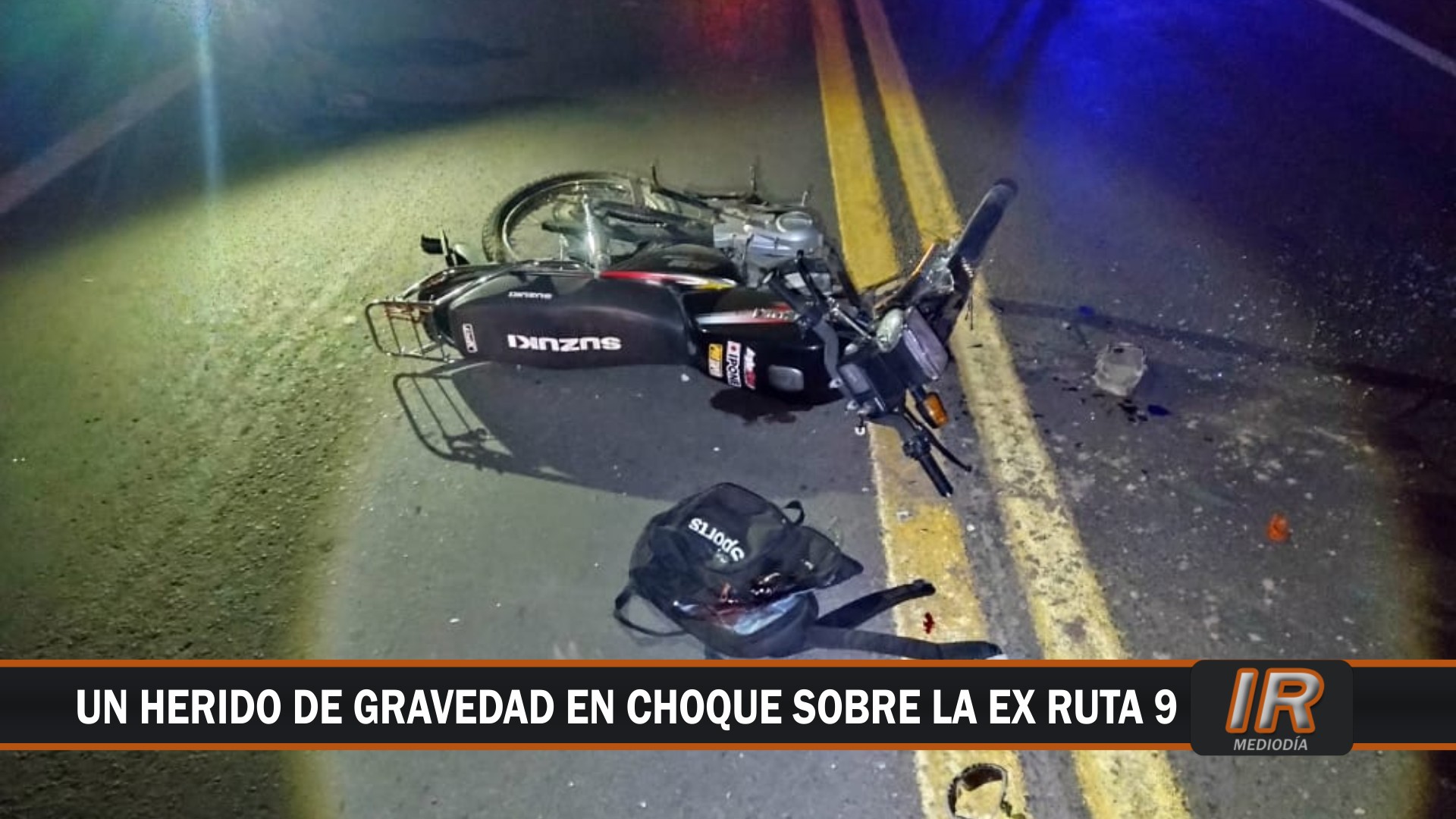 Siniestro vial en la madrugada roldanense en la Ruta Nacional 1V09 con un motociclista lesionado en el cráneo.