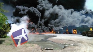 Siendo aproximadamente las 13:30 hs. de este sábado, se originó un incendio en la Aceitera Martínez, situada en el km. 336 de la ex Ruta Nacional 9, en jurisdicción de San Jerónimo Sud casi en el límite con Roldán.