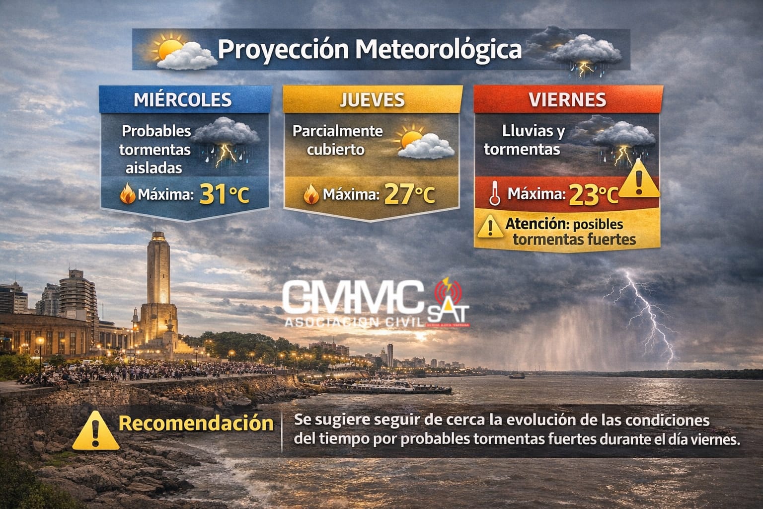 Desde el CMMC aconsejan seguir de cerca la evolución de las condiciones meteorológicas, especialmente hacia el viernes, ante la posibilidad de fenómenos intensos que podrían generar complicaciones.