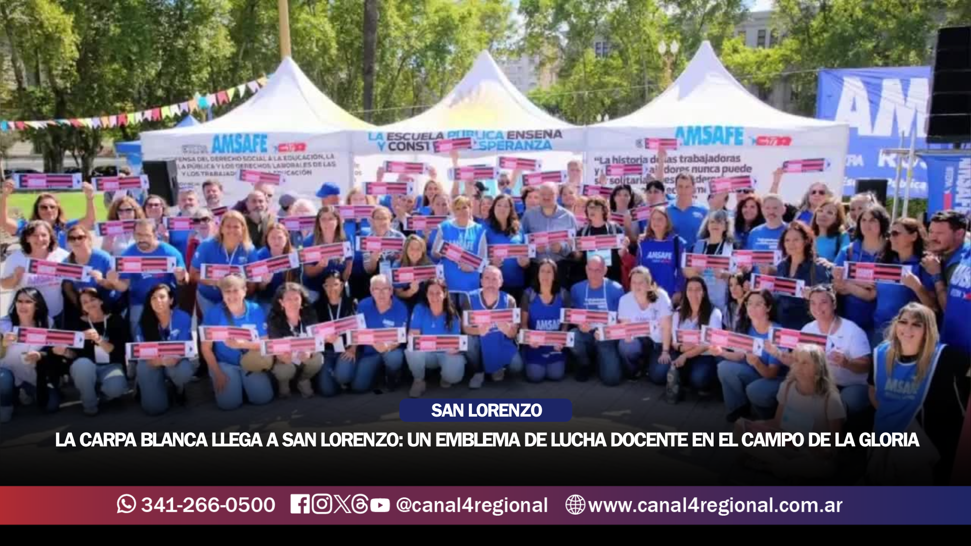 La histórica Carpa Blanca de AMSAFE continúa su recorrido por el territorio provincial y desembarca este fin de semana en el departamento San Lorenzo. En diálogo con Canal 4 Regional, Adriana Monteverde brindó detalles sobre las jornadas que se llevarán a cabo en el Campo de la Gloria, un sitio cargado de simbolismo para la región.