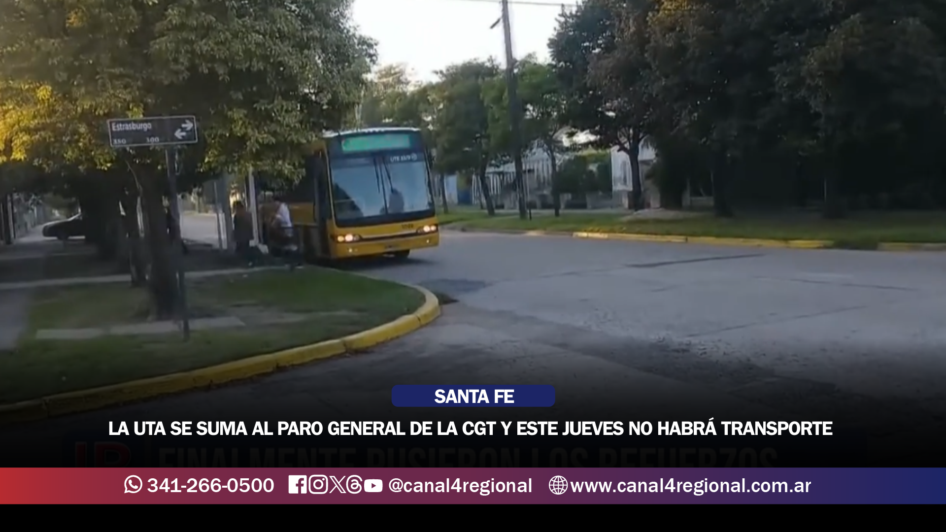 La medida de fuerza tendrá alcance nacional y afectará a los servicios de transporte de corta, media y larga distancia en todo el país. En el caso de Rosario y la región, la delegación local de la UTA resolvió en un plenario de delegados sumarse a la huelga, por lo que desde el primer minuto del jueves y durante toda la jornada no circulará el transporte urbano ni el interurbano regional.