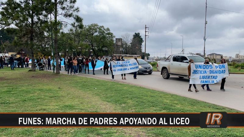 En horas del mediodía de este viernes 3 de septiembre se llevó a cabo la primera de las movilizaciones convocadas por un grupo de padres y familiares de los alumnos que concurren al Liceo Aeronáutico Militar de la ciudad de Funes, en apoyo de la institución y en rechazo de los relevamientos del director comodoro Juan Pablo Javier Serroels Carranza y del jefe del cuerpo de cadetes comodoro Mariano Germán Gyenge.