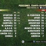 Por su parte, El Porvenir no pudo con el colista Montes de Oca en su visita a territorio Canario y empató sin goles en Primera División. Por su parte, la Cuarta goleó 4-1 y se afirma también como líder de la zona 2.