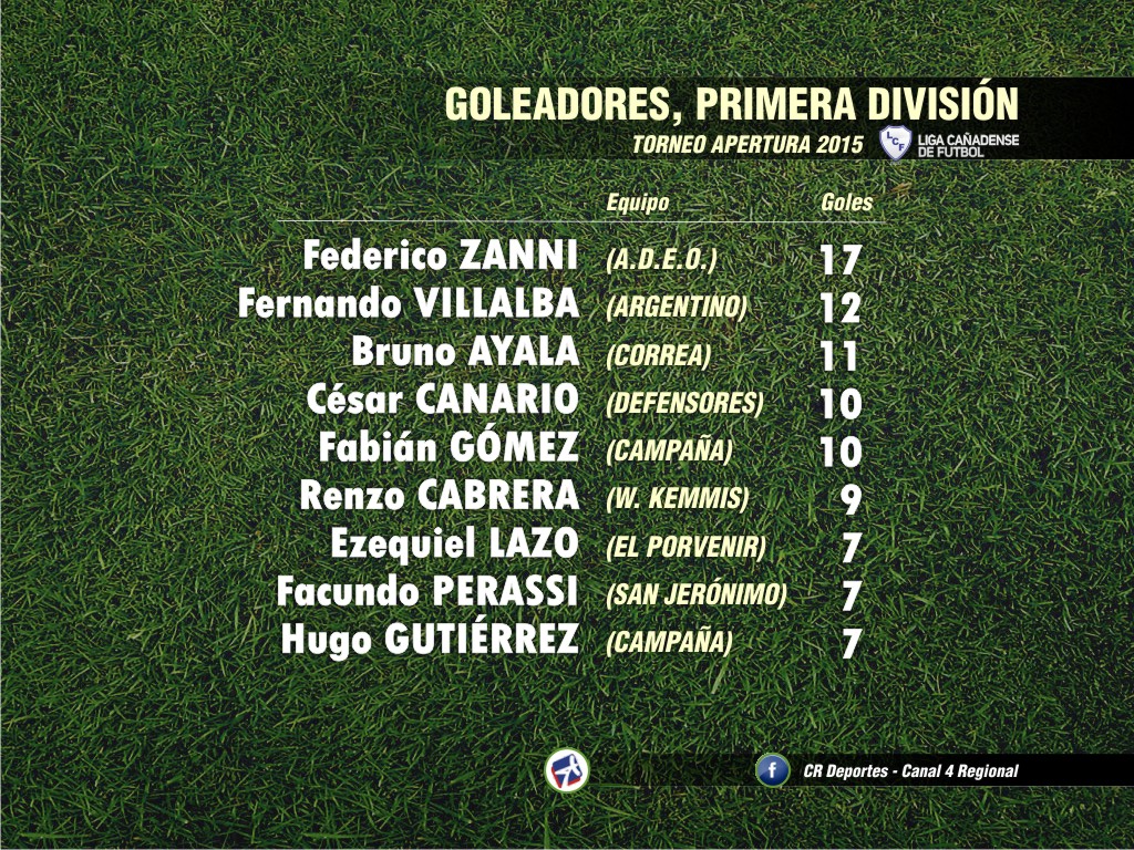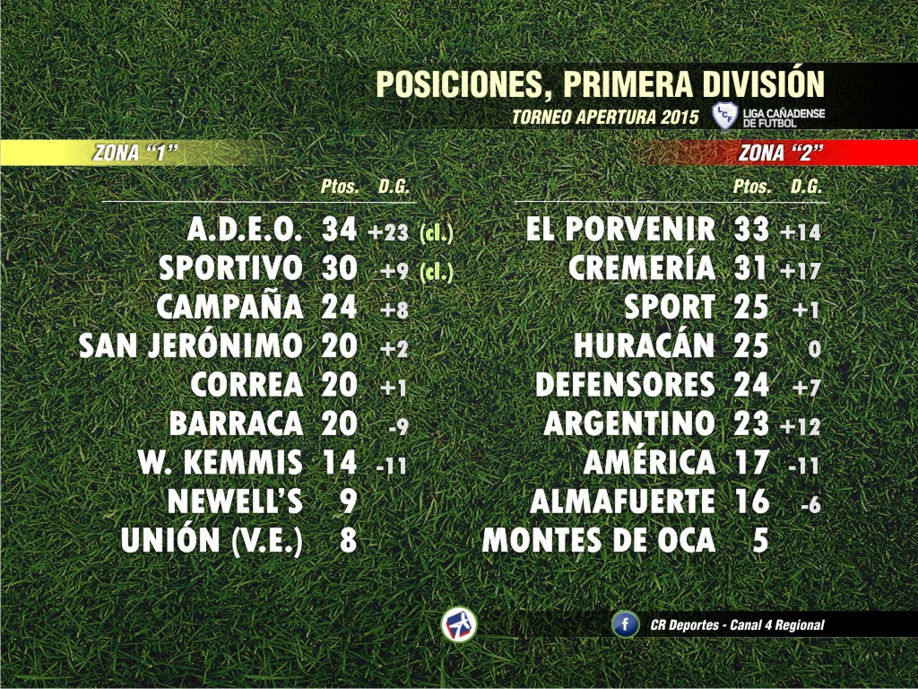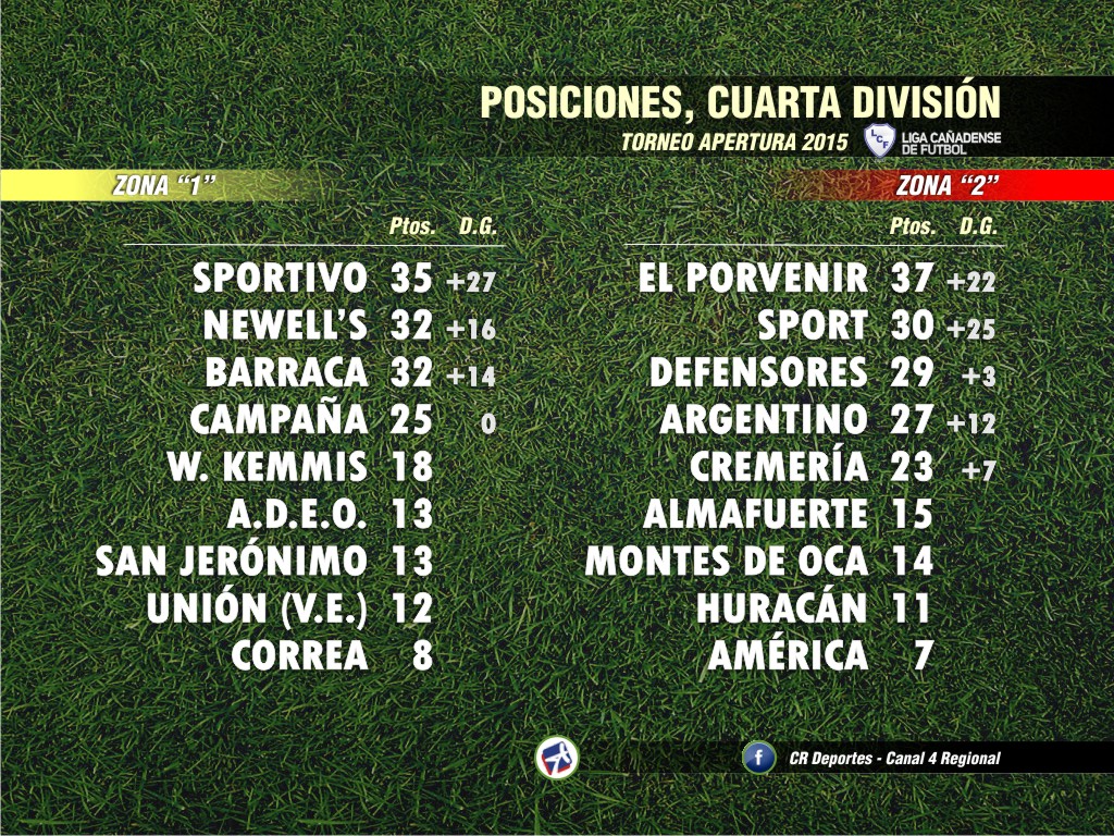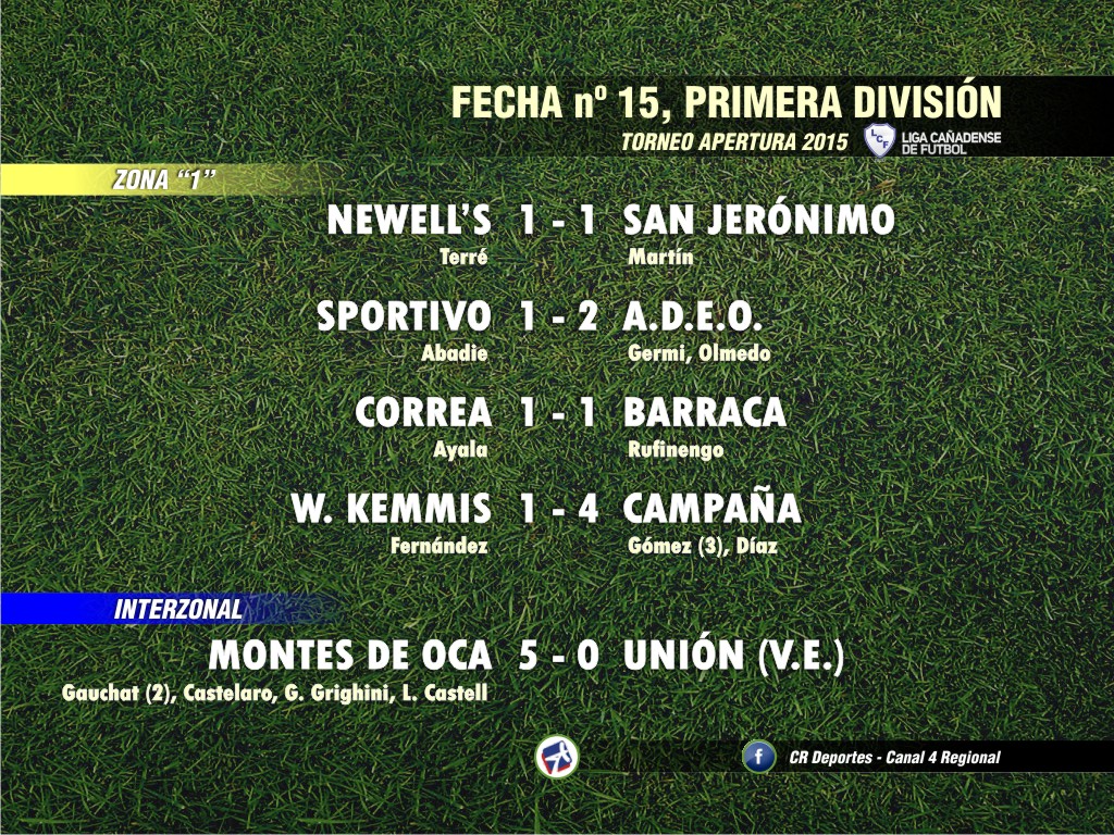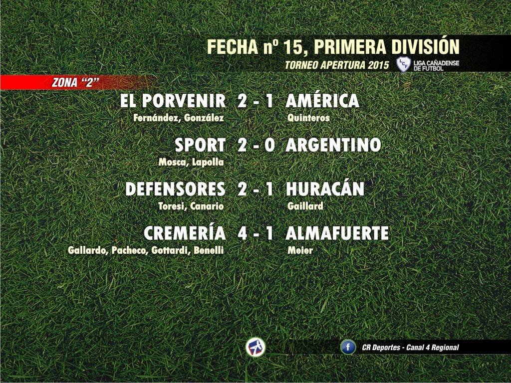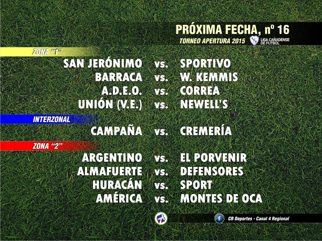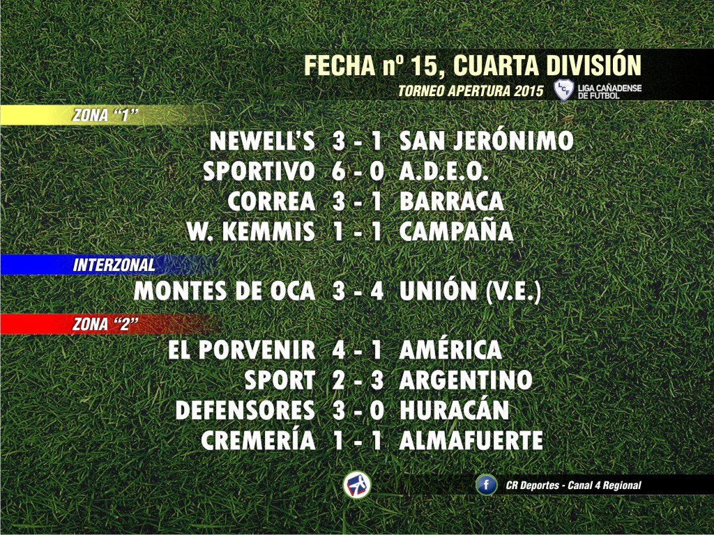Nueva fecha de las categorías superiores de la Liga Cañadense de Fútbol, al disputarse la fecha nº 15 del Torneo Apertura que sumó nada menos que 68 goles entre Cuarta y Primera División.