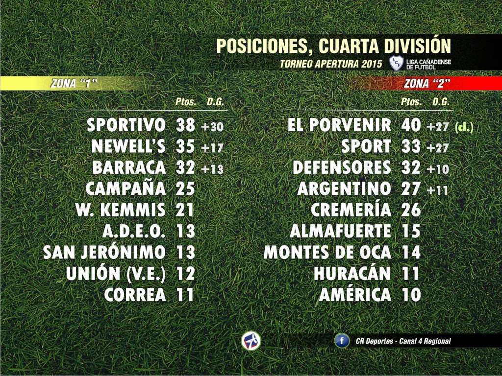 Por su parte, buenas y malas alternó El Porvenir en su visita a Argentino. En Cuarta División, la victoria 2-0 del Rojiverde le aseguró un lugar en la próxima fase y también la primera posición en la zona 2. En Primera, a pesar de haber caído 0-2 ante el Celeste parejense, El Porvenir abrochó el pase a la próxima ronda, donde ya lo había conquistado Sportivo y A.D.E.O..
