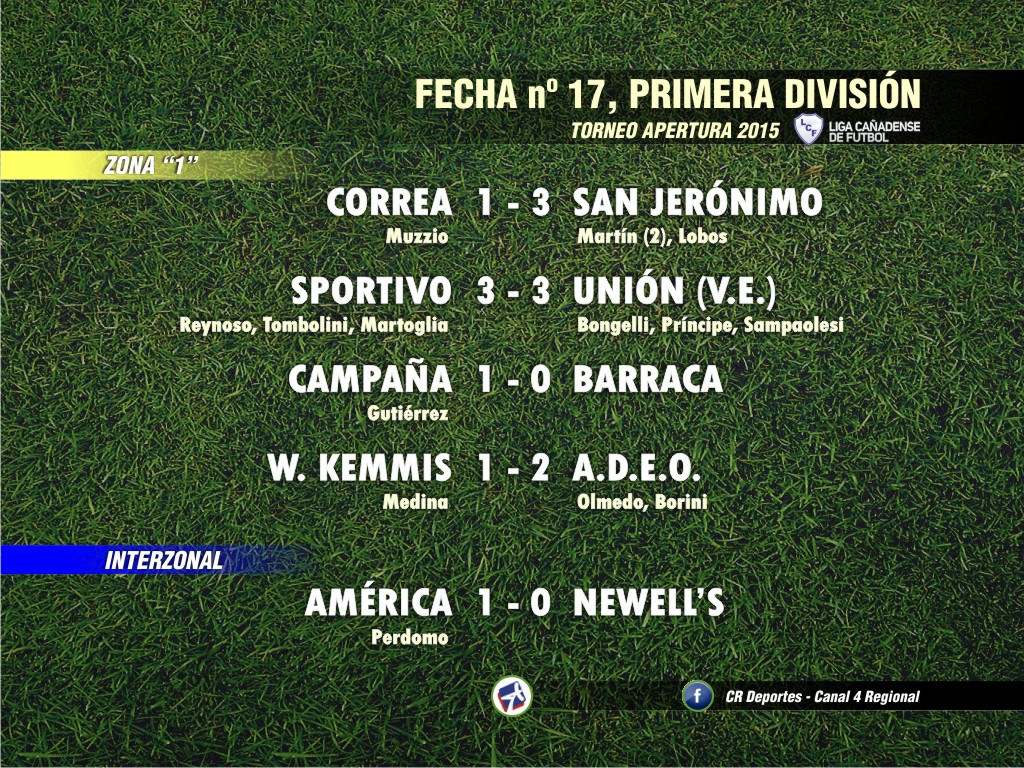 Por su parte, el Atlético San Jerónimo visitó a su par de Correa, con caída en Cuarta por la mínima diferencia y con un triunfo 3-1 en Primera División, con goles de Rodrigo Lobos y un doblete de Diego Martín. Esta victoria ante un rival directo más la caída de Barraca frente a Campaña le permitió al elenco suizo tomar una distancia de 3 puntos sobre el conjunto de Armstrong pero con un gran trecho en la diferencia de gol (+6 el Atlético, -9 Barraca), lo cual prácticamente le abre las puertas para convertirse en el octavo pasajero (lugar que ocupará en los playoffs en el caso de clasificar y que lo enfrentará en cuartos de final a A.D.E.O.).