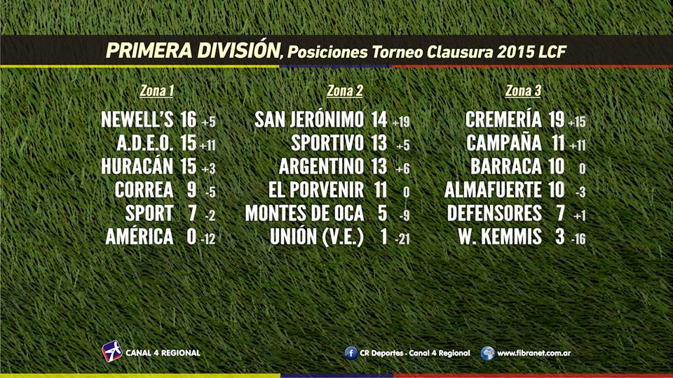 En Las Parejas hubo duelo de líder y escolta, con el cotejo entre Argentino y el Atlético San Jerónimo, registrándose sendos empates: 1-1 en Cuarta División y sin goles en Primera. En la categoría mayor, el punto le sirve al elenco de Pablo Fiori para continuar al frente de la tabla de posiciones.