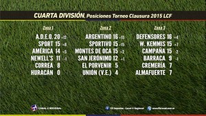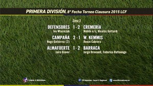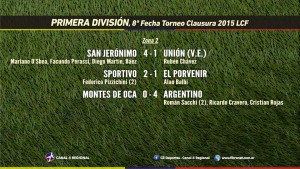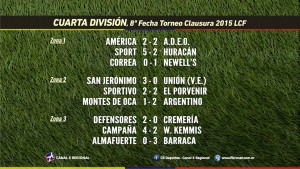 Nueva jornada de las categorías superiores de la Liga Cañadense de Fútbol, la octava de este Clausura 2015 que se jugó de manera desdoblada, comenzando en la noche del jueves con los cotejos entre Sportivo y El Porvenir, donde empataron 2-2 en Cuarta División y con triunfo parejense por 2 tantos a 1.