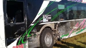 El tránsito debió ser interrumpido de manera total debido al escenario provocado por las colisiones. El ómnibus quedó estacionado a un costado de la ruta con daños sobre su rueda delantera izquierda. Por su parte uno de los camiones volcó sobre la banquina derramando parte de su carga cerealera, mientras que el otro rodado quedó detenido sobre la cinta asfáltica.