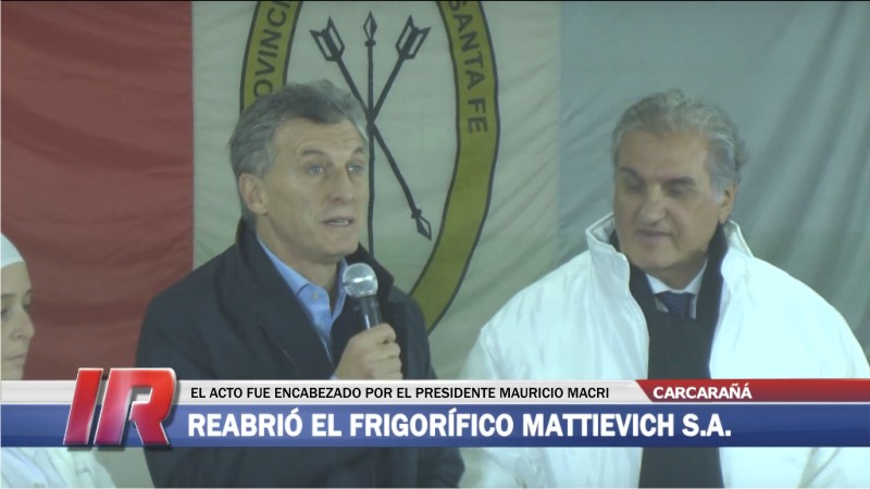 El acto de reapertura fue encabezado por el titular de la planta José Mattievich junto al Presidente de la Nación Mauricio Macri, bajo las atentas miradas del Ministro de Agroindustria de la Nación Luis Miguel Etchevehere y del Gobernador Miguel Lifschitz, a quien criticó porque Santa Fe “es la única provincia grande que no ha adherido a la Ley de ART”.