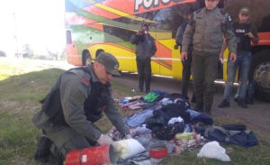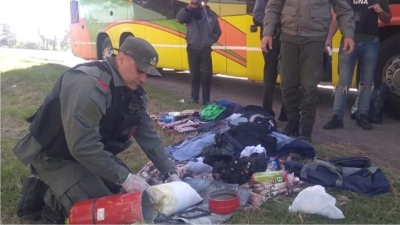 Estos dos individuos, de nacionalidad boliviana, se trasladaban en un ómnibus de larga distancia que se dirigía desde Santa Cruz de la Sierra con destino a Liniers, en Buenos Aires. Los gendarmes efectuaron una requisa de rutina en el rodado y hallaron este elemento que no guardaba coincidencia con los habilitados.