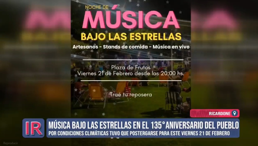 Para conocer mayores detalles acerca de esta “Noche de Música bajo las Estrellas” consultamos a Martín Garreta, coordinador del Área de Cultura comunal, quien invitó a todos los ricardonenses a participar de esta propuesta, recordando que se pueden llevar reposeras para disfrutar de mayor comodidad.