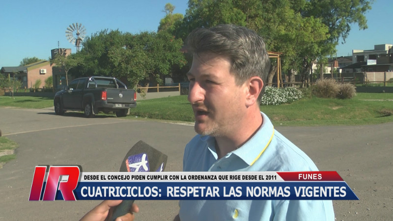 El concejal Luis Dolce indicó que está vigente la normativa en la ciudad de Funes que permite la circulación de los denominados cuatriciclos en todo el ejido de acuerdo a las especificaciones establecidas en una ordenanza aprobada en el año 2011, y solicita a toda la población ya sean los habituales vecinos o bien los visitantes que en época estival multiplican la cantidad de habitantes a que respeten la misma para mantener la tranquilidad y evitar inconvenientes mayores.