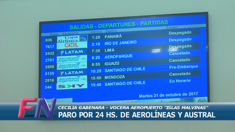 El Aeropuerto Internacional “Islas Malvinas” de Fisherton se vio prácticamente desolado en la jornada de este martes al cumplirse un nuevo paro de actividades de los sindicatos que nuclean a los trabajadores de Aerolíneas Argentinas y de Austral, afectando a unas 40 mil personas en todo el país y que obligó a la reprogramación y suspensión de 380 vuelos tanto de cabotaje como internaciones.